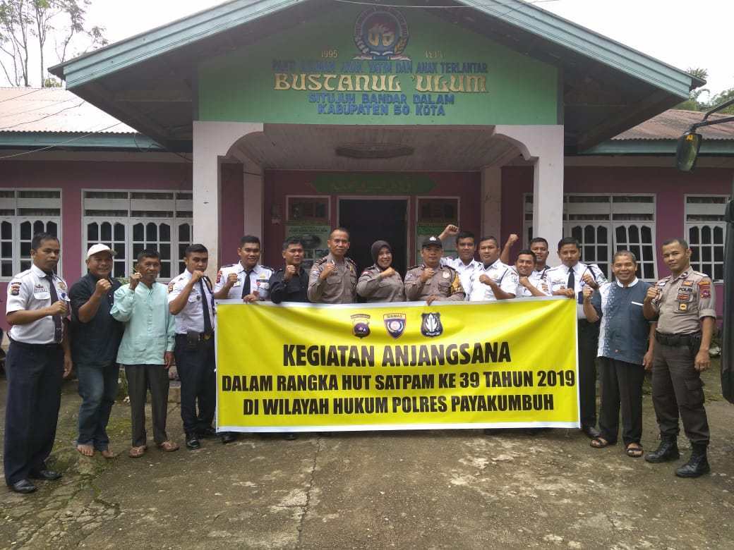 Mantap Polres Payakumbuh, Sat Binmas melakukan fungsi Binkamsa kepada Satpam, dalam rangka HUT Satpam yang ke 39 melaksanakan anjangsana berupa memberikan bantuan sembako ke panti asuhan, panti jompo dan keluarga Satpam yang kena musibah.