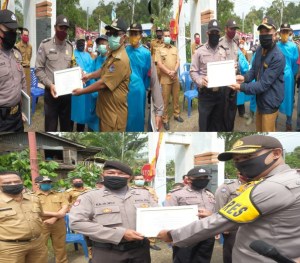 Kapolres Payakumbuh memberikan piagam penghargaan kepada Ketua RW dan RT yang menginisiasi pendirian Posko Relawan Penanganan Covid-19 di Perumnas Kubang Gajah, Kel. Limbukan, Kec. Payakumbuh Selatan, Selasa pagi (14/4).